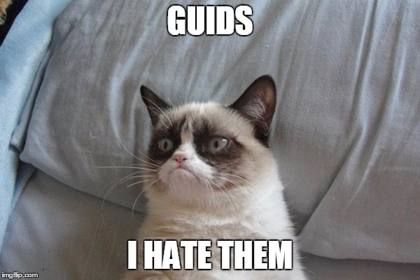 If you do not have a situation that meets all of the above criteria, then you are only using GUIDs because you heard of some really smart and successful guys using them on some really monstrous systems, and you want to be like them.