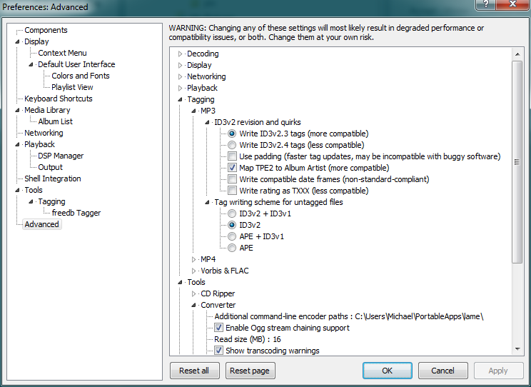 2. I instructed my favorite mp3 tag editor to save mp3 file tags as follows: