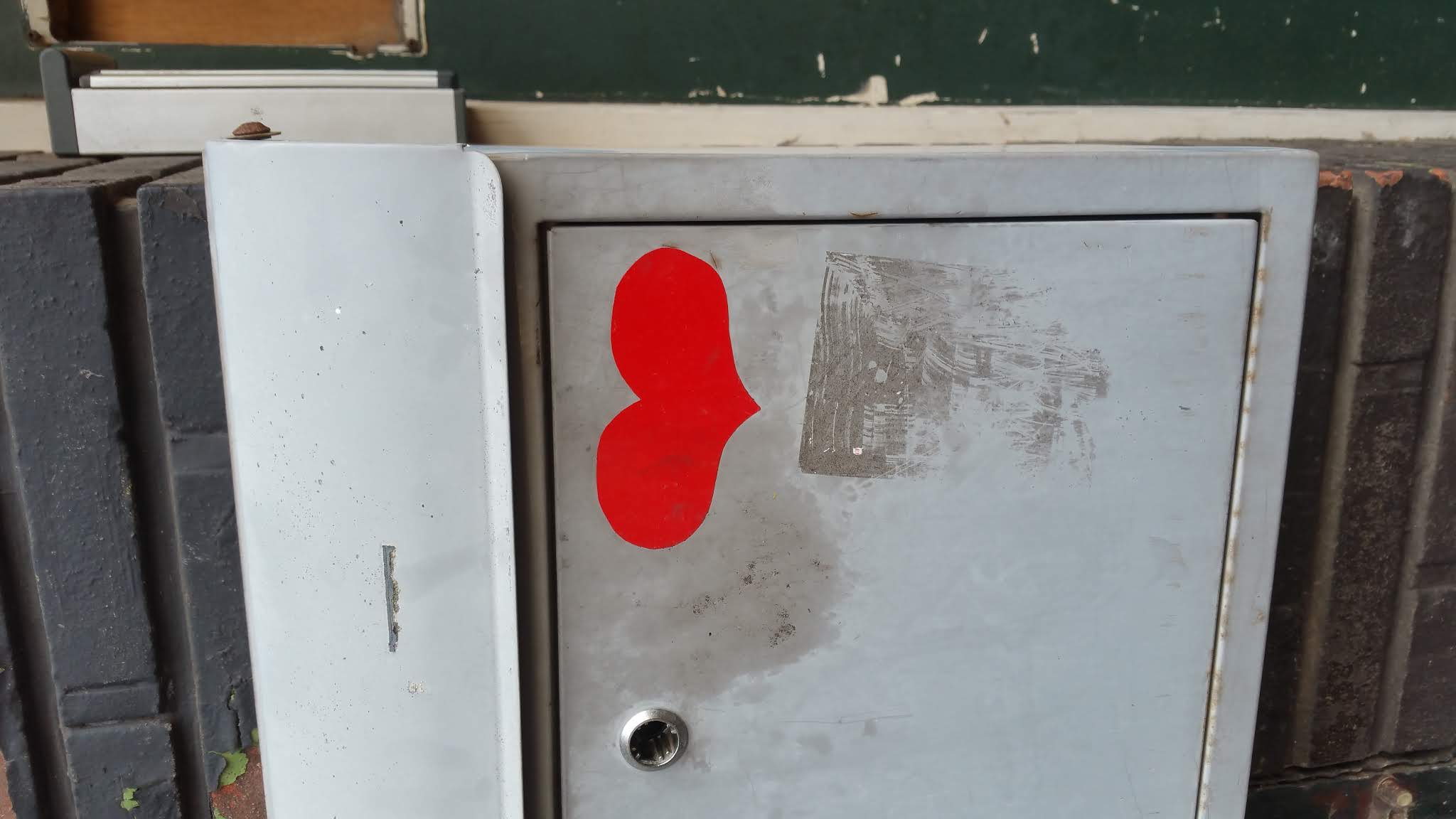 In this post I am documenting sightings of these red heart stickers.
