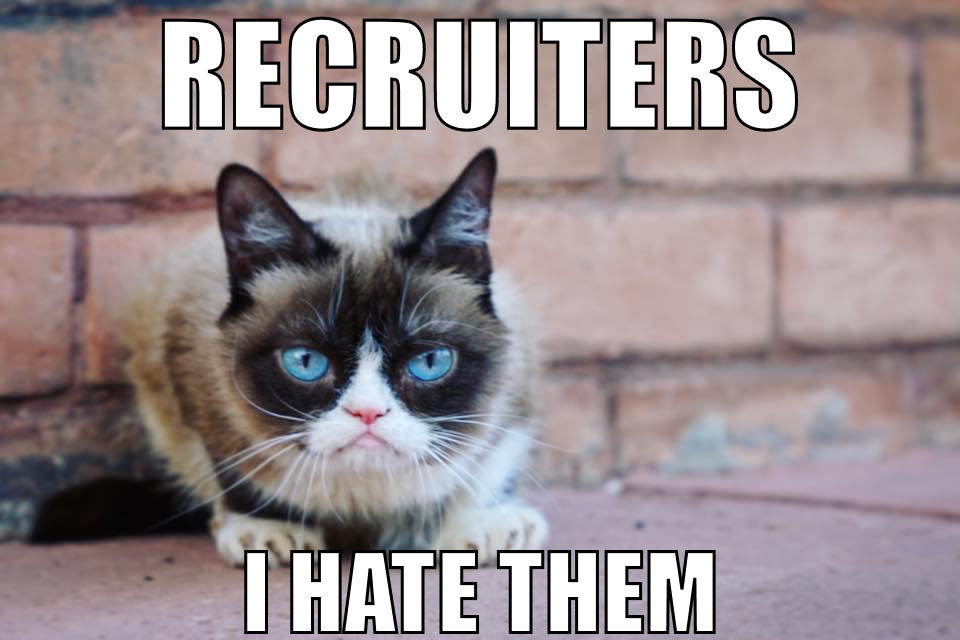 Mandatory grumpy cat meme -- "Recruiters - I hate them"